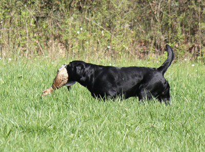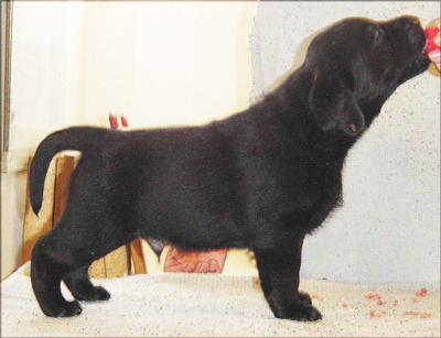 sicher. Sein Beute und Bringtrieb waren sehr ausgeprägt, Spiel- und Spürtrieb ausgeprägt. Auf dem Parcours war er absolut sicher, interessiert und unerschrocken. Ein Rüde mit sehr guten labradortypischen Anlagen, der schusssicher ist.