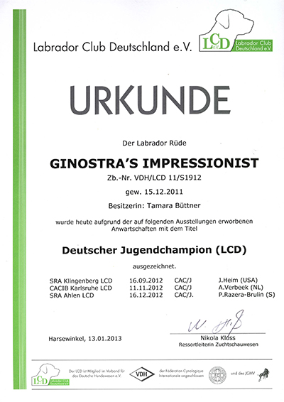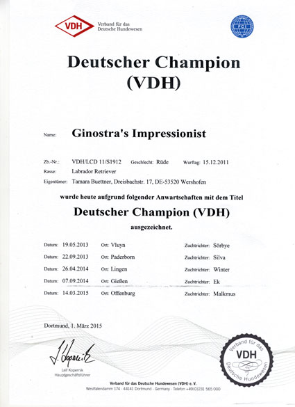 Ginostra Labradors - Tamara Büttner - Dreisbachstrasse 17 - 53520 Wershofen